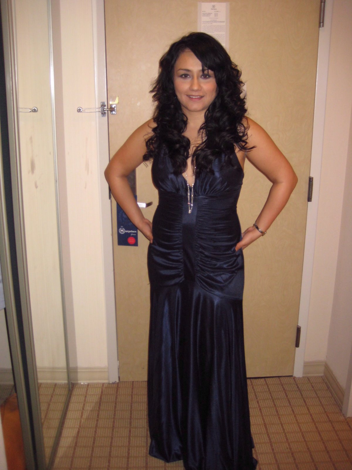 So Bryan asked me to his Dining In which is like a Military Ball. Being that I didn't really have that great of a time at my prom I really wanted to go b/c it was formal and what girl doesn't like to dress up in a big fancy dress. I had my choice of two dresses a green halter and a dark blue rouched one. I went with the blue one b/c I didn't have time to alter the green one. I didn't get to wear a tiara but I had fun none the less. My hair didn't behave as planned. I tried a new curl product that kind of made it too greasy. Oh well, should I have stuck to what I know. Also used foundation which probably was a bad idea since I never do. Made my face way too shiny in pictures even though I used my Smashbox primer. What I did try was this NARS Body Glow. It smells awesome and made my skin so soft. Didn't really like any of the pics of Bryan & I. So I'm posting some of them anyway to get your opinion. I'm looking kind of thick in some of the pics mabye it was a bad choice but it looked good on me.